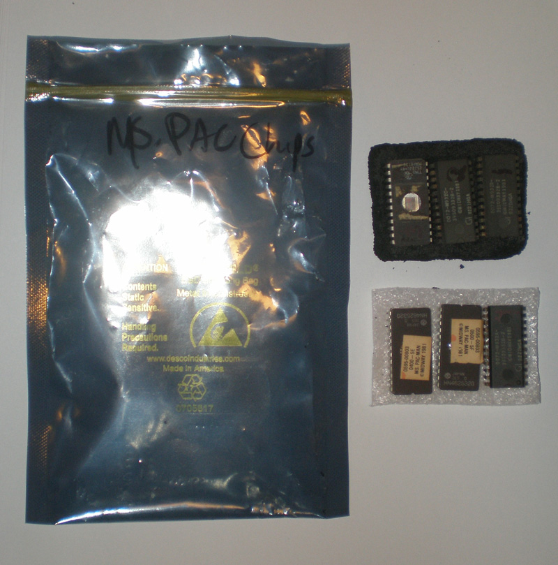 Again, from the first article, just use a very small flat head screwdriver to wiggle those chips out, and set them aside pressed into a piece of dense foam and store them in a static free electronics bag.