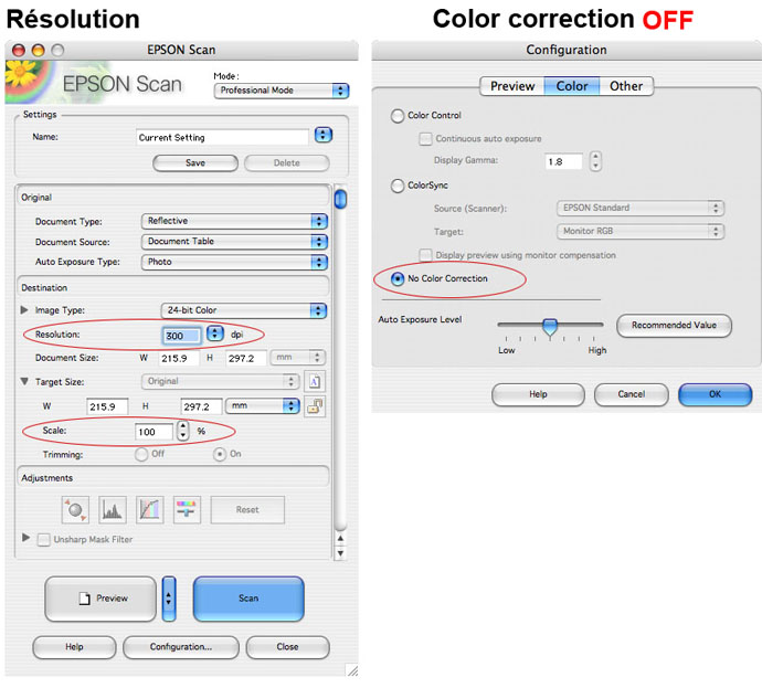 Here are some screenshots of the details for your scan, your resolution and other miscellaneous settings. (Click the scanner settings photo for a larger version)