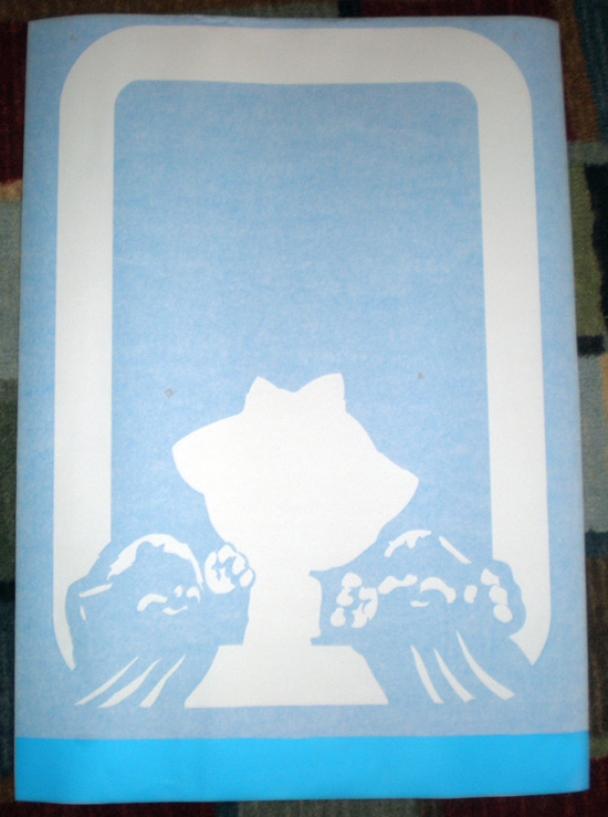 If you’ve forgotten, here are Paul Murphy’s three videos showing him prepping the black, pink, and yellow Ms. Pac-man vinyl stencils. Fortunately he used a little time lapse, otherwise these videos might be hours long.